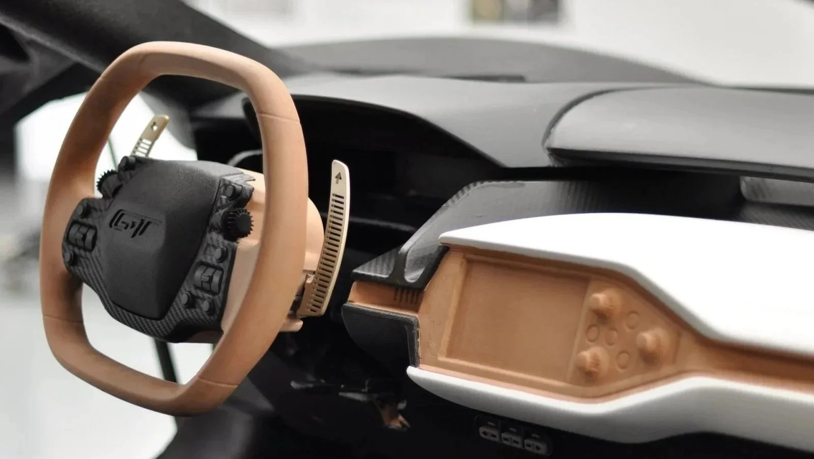 Many rounds of trial and error took place before we decided on an optimal steering wheel which encompasses the practicality of road driving and spirit of racing.